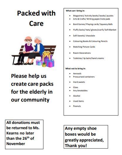 As part of Spirit of Pres Week, we’re delighted to announce that we will once again be partnering with @carepack.ie, following last year’s great success! We warmly encourage students to take part by donating any of the items listed above. .For more information on how you can get involved, please speak with Ms. Kearns. All donations should be returned to the school by Wednesday, November 26th.Thank you for your kindness and continued support!