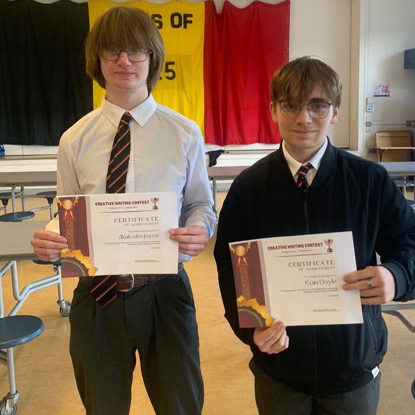 Pres Bray’s annual creative writing competitions kicked off in term one with a spooktacular display of creative writing. Well done to worthy winners Levi McNulty, Eoin Doyle, Andrew Lee, Malcolm Joyce and Josh Doyle. Keep your eyes peeled for information on the upcoming Christmas competition. For more information see Ms. White and Ms. Crocker. Keep up the creativity!