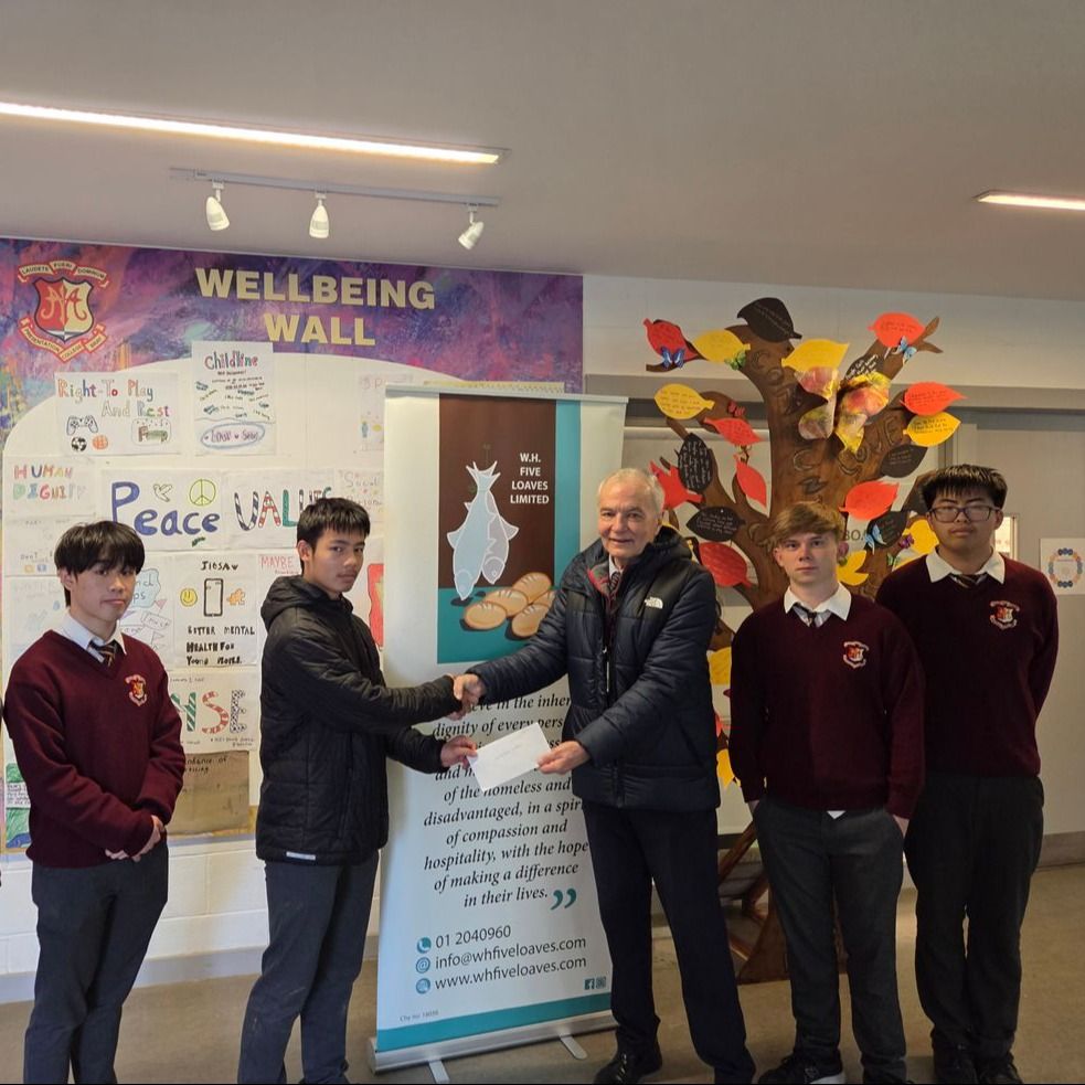 Tommy from Five Loaves visited the school last week to collect the cheque from our recent bake sale. A group of students who helped on the day had the pleasure of presenting it to him. A sincere thank-you to everyone in our school community who supported the event and helped make the bake sale such a great success. We raised a significant amount of funds, which will be of great benefit to Five Loaves. This would not have been possible without your support — thank you once again